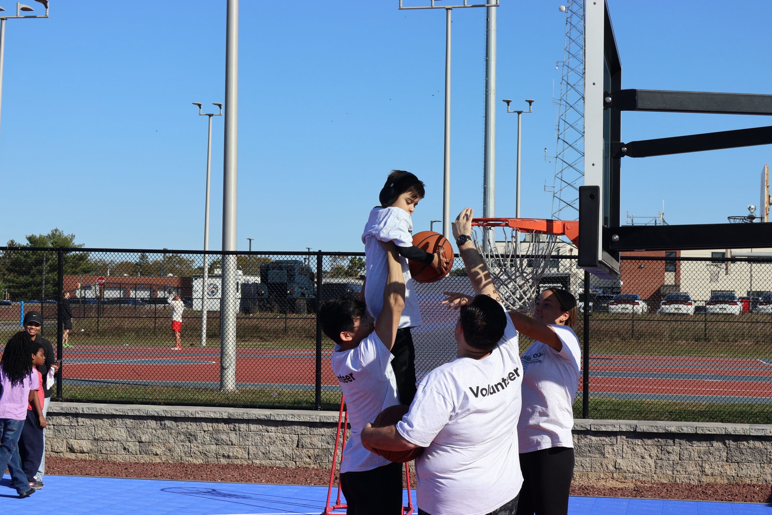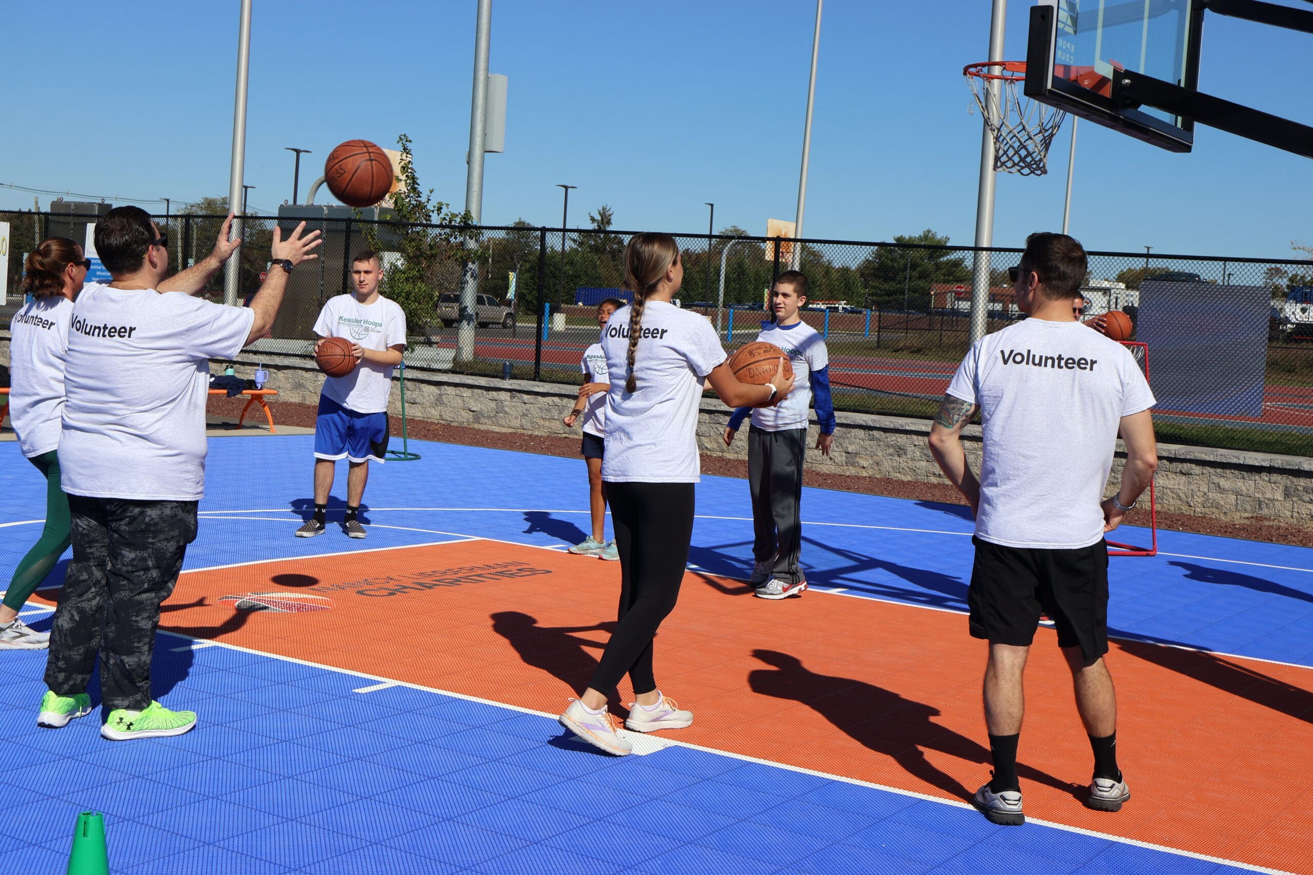 Basketball at the Field of Dreams is run by volunteers from Kessler Rehabilitation. This program runs as a clinic-style rather than a league. Participants will learn and practice fundamental basketball skills each week, such as dribbling, passing, and shooting. Throughout this program, participants will also work on social skills such as teamwork, communication, and taking turns.